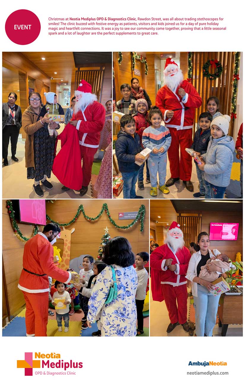 Christmas at Neotia Mediplus OPD & Diagnostics Clinic, Rawdon Street, was all about trading stethoscopes for smiles! The clinic buzzed with festive energy as patients, visitors and kids joined us for a day of pure holiday magic and heartfelt connections. It was a joy to see our community come together, providing that a little seasonal spark and a lot of laughter are the perfect supplements to great care.